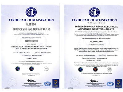 任達(dá)電器通過ISO9001 質(zhì)量管理體系認(rèn)證,2000年通過改版認(rèn)證。