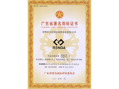深圳市寶安任達(dá)電器實(shí)業(yè)有限公司“renda”標(biāo)志榮獲“中國馳名商標(biāo)”。