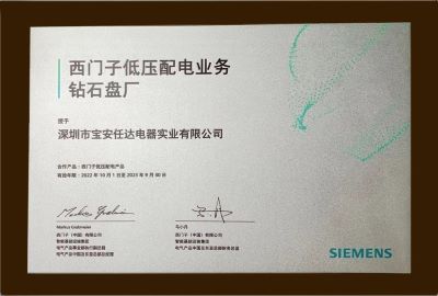 榮獲深圳市首家“西門子鉆石盤廠”榮譽(yù)稱號。開平任達(dá)電器取得“ISO14001:2015環(huán)境管理體系證書”