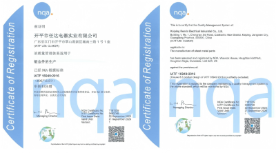 開平任達(dá)電器取得“IATF16949:2016汽車行業(yè)質(zhì)量管理體系證書”