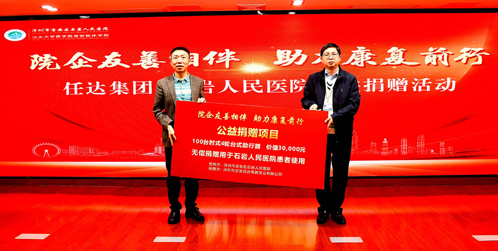 為踐行企業(yè)社會(huì)責(zé)任,推動(dòng)區(qū)域醫(yī)療事業(yè)發(fā)展,2025年03月20日,任達(dá)集團(tuán)攜手深圳市寶安區(qū)石巖人民醫(yī)院共同舉辦"康復(fù)醫(yī)療公益捐贈(zèng)儀式"。本次活動(dòng)以"院企友善相伴,助力康復(fù)前行"為核心,通過價(jià)值30000元100臺(tái)肘式4輪臺(tái)式助行器捐贈(zèng),為石巖街道醫(yī)療患者康復(fù)治療提供硬件支持,彰顯新時(shí)代院企合作的公益力量。