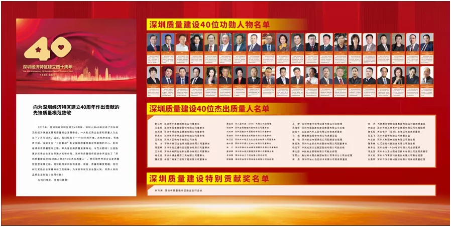 主辦方表示,2020年是深圳經濟區建立40 周年,深圳人用40年創造了世所罕見的經濟快速發展和質量效益發展奇跡,一大批優秀企業家和質量人為此立下了汗馬功勞。步入2021年,深圳站在下一個40周年的開端,同時也站在十四五規劃和二O三五年遠景目標的開端,如何續寫輝煌,鑄就高質量發展的全球城市標桿,令人期待。為激勵更多優秀企業家發揮先鋒引領作用,主辦方開展了“深圳質量建設40位功勛人物及40位杰出質量人”評選活動,通過企業推薦、資格審查、現場考察(抽查)、專家評審等嚴格程序,形成了“深圳質量建設40位功勛人物及40位杰出質量人”榜單。