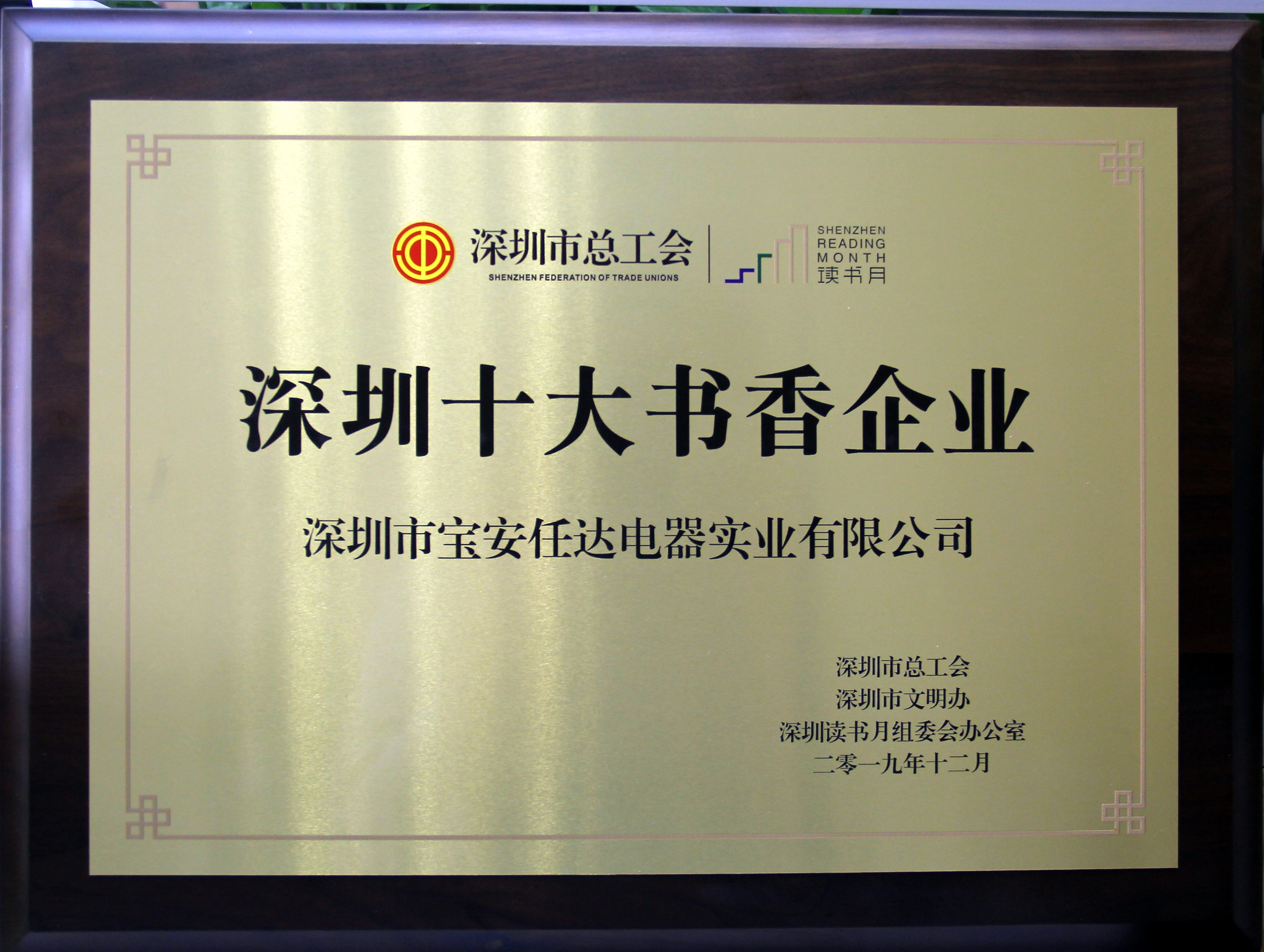 近日,在深圳市舉辦的“深圳十大書香企業”頒獎儀式上,深圳市寶安任達電器實業有限公司喜獲“深圳十大書香企業”榮譽稱號。